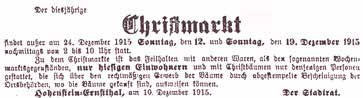 Vor 100 Jahren ... (Dezember 1915) Auszüge aus dem Hohenstein-Ernstthaler Tageblatt