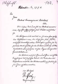 Brief vom Bürgermeister Dr. Patzan den Sohn der Auguste Reinhard