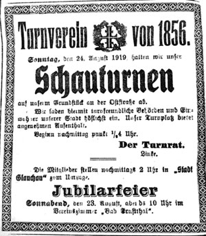 Vor 100 Jahren ... (August 1919) Auszüge aus dem Hohenstein-Ernstthaler Tageblatt