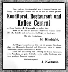 Der Gasthof „Stadt Chemnitz“ ist wie wir hören, vom jetzigen Besitzer Herrn Hoyer an einen Chemnitzer Pferdehändler verkauft worden, während Herr Hoyer ein Haus auf der Chemnitzer Straße*1 käuflich erworben hat. Der neue Besitzer wird den Gasthof, der sich unter Herrn und Frau Hoyer eines guten Rufes erfreute, wahrscheinlich am 1. Januar übernehmen.