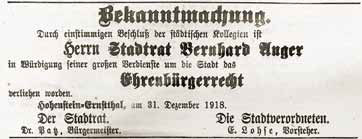 Stadtrat Hohenstein-Ernstthal, den 14. Januar 1919